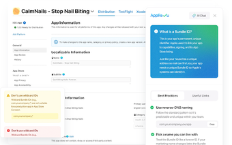 Wśród najważniejszych funkcji znajdują się podpowiedzi kontekstowe dotyczące trudnych pól, takich jak „Słowa kluczowe” czy „Tekst promocyjny”, a także sugestie oparte na sztucznej inteligencji, które pomagają w pisaniu. AppRevu jest zaprojektowane z myślą o deweloperach, oferując lekką i przyjazną dla prywatności alternatywę, która nie tylko poprawia codzienne zadania w ASC, ale również nie zbiera ani nie przesyła prywatnych danych użytkowników.
